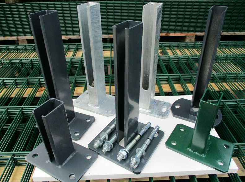 Stabile Fußplatte zum Aufdübeln für Zaunpfosten.