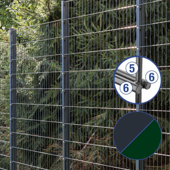 Verfügbare Farben RAL 6005 (moosgrün), RAL 7016 (anthrazit), Verzinkt